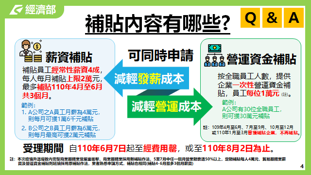 主要是針對企業、工作方面的補貼(以經濟部、勞動部與衛福部為主,不含教育部、交通部等)