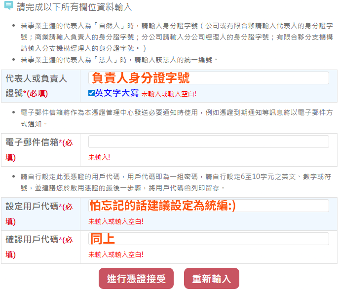 請以負責人身份證字號啟用憑證