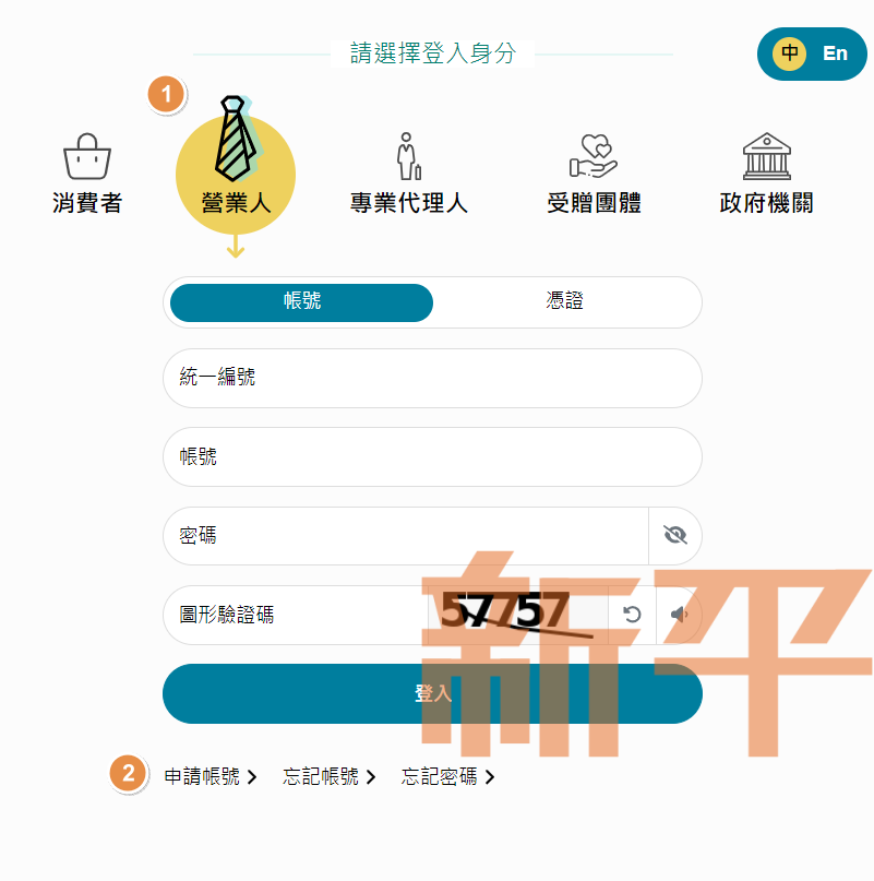 1. 請擇登入身分:營業人