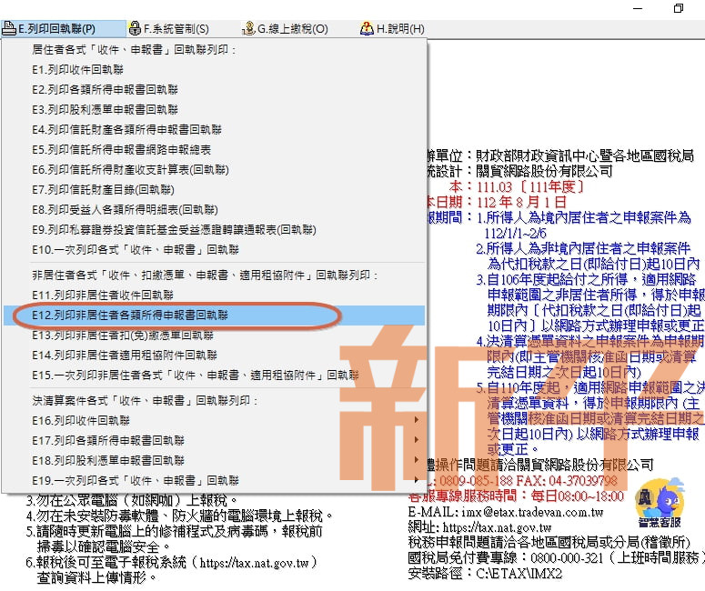 到財政部電子繳稅申報服務網,下載各類所的憑單含信託資料電子申報系統。