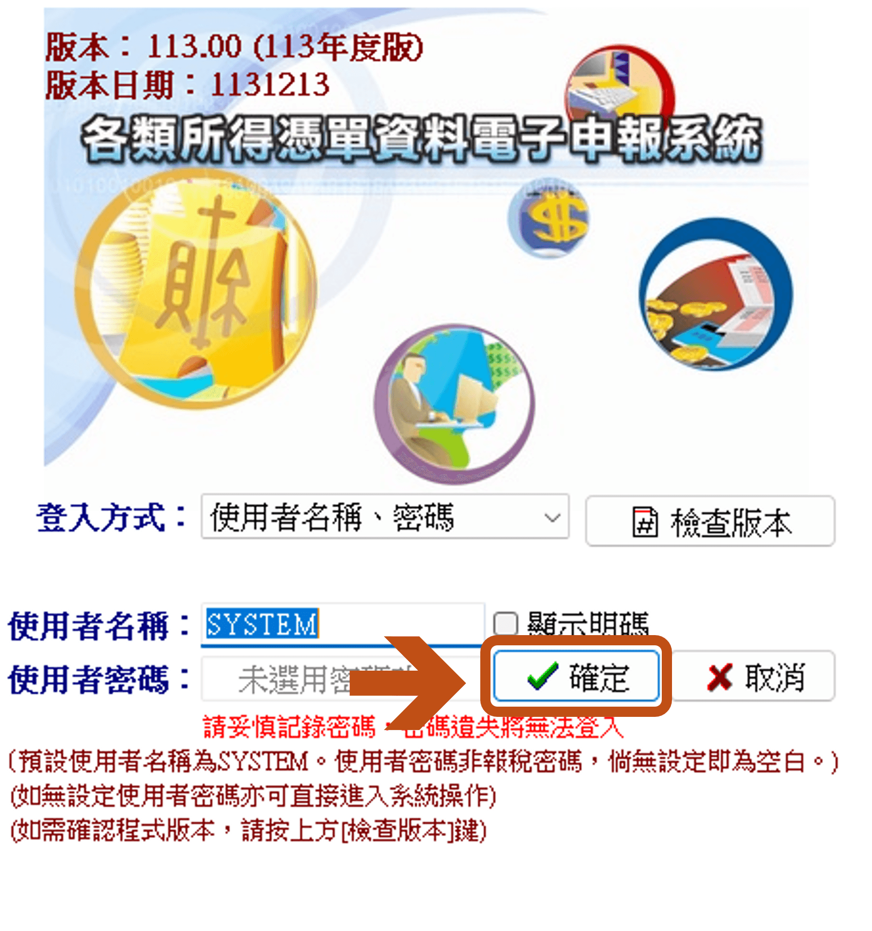 進入系統後直接點擊「確定」(名稱會自動顯示,密碼無須輸入)。