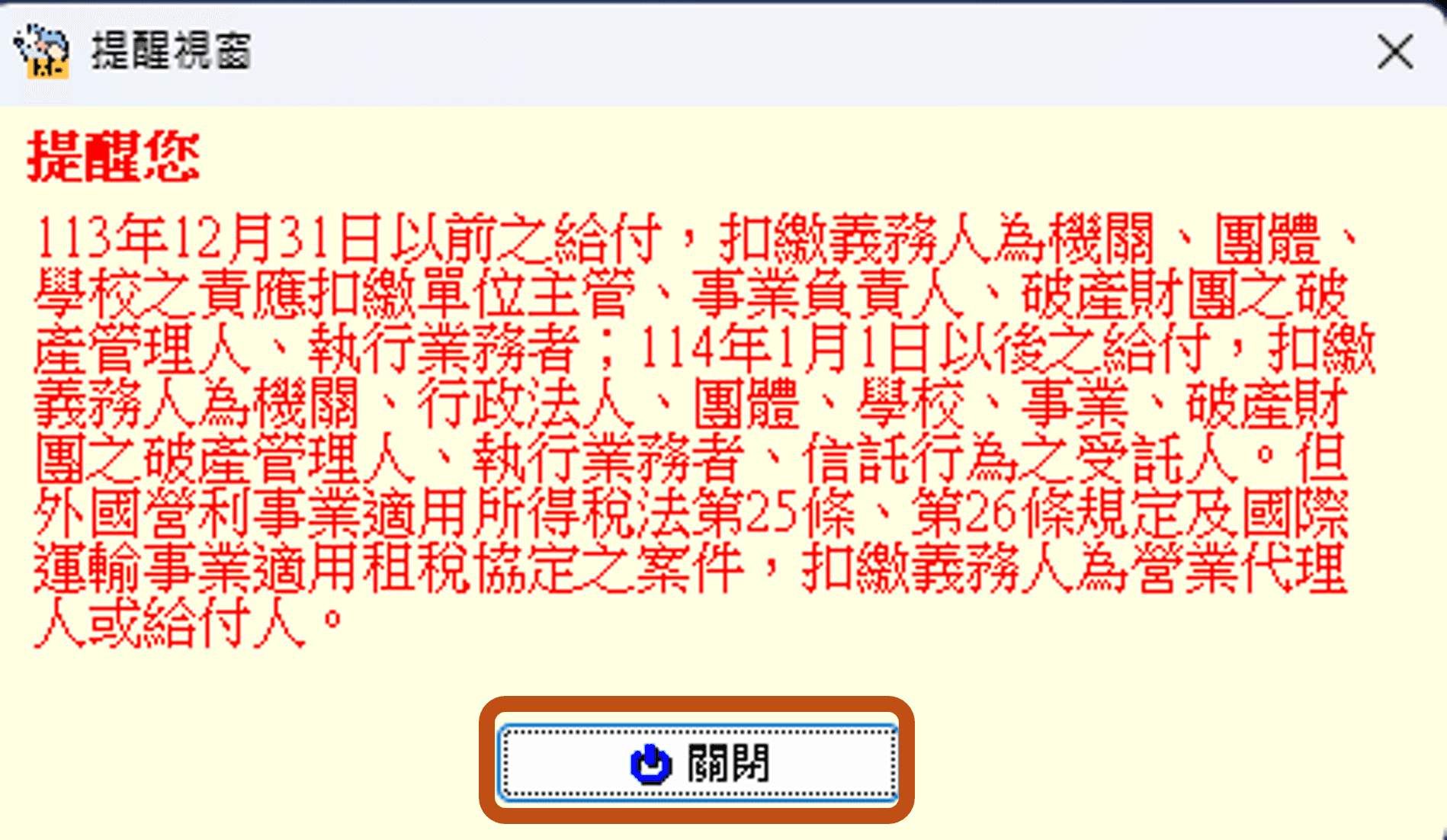 提醒視窗直接點擊「關閉」就會進入申報系統。
