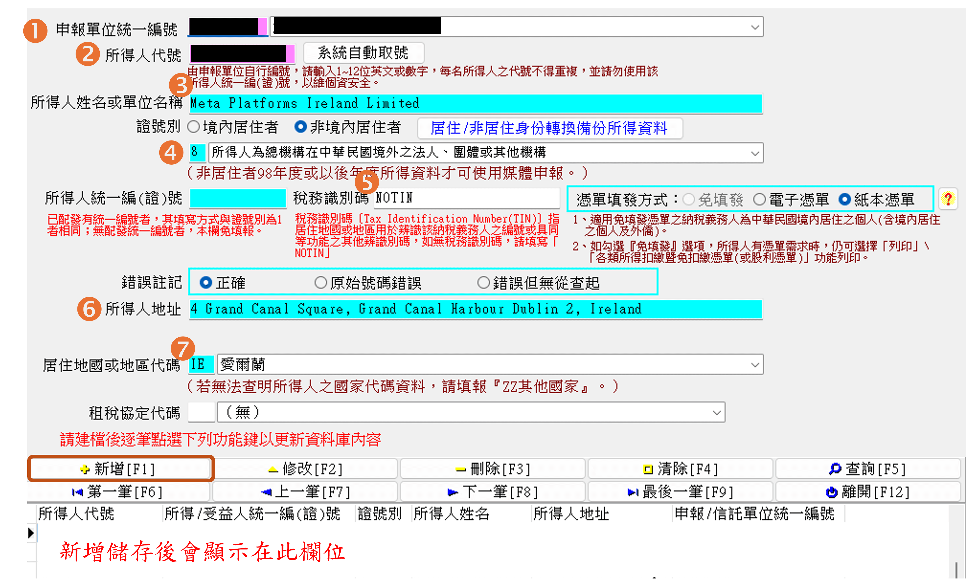 所得單位:Meta Platforms Ireland Ltd (Facebook 公司之前有改名為Meta了)